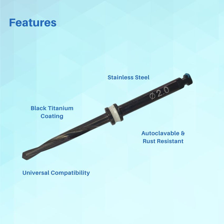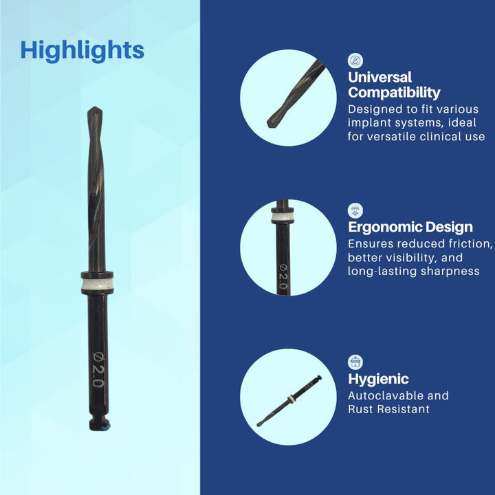 Artman Instruments 2.0 mm Titanium-Coated Stainless Steel Dental Implant Drill Precision Osteotomy Drill for Implant Site Preparation