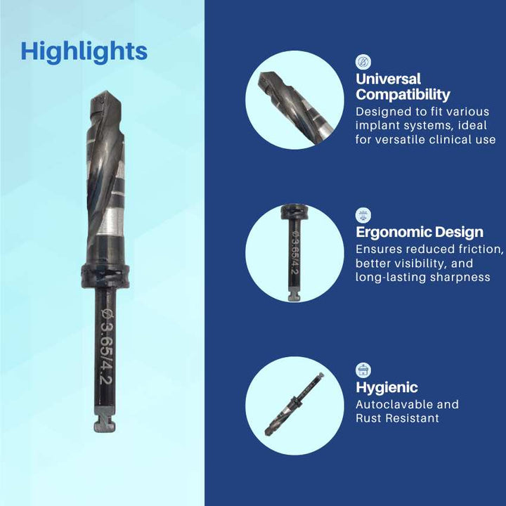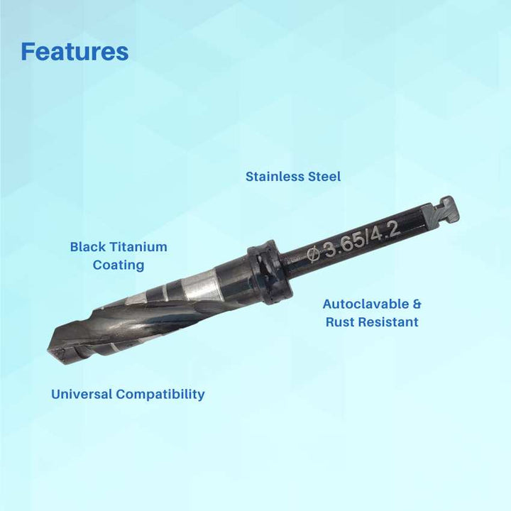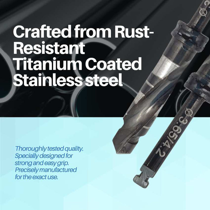 Artman Instruments 3.65/4.2 mm Titanium-Coated Stainless Steel Dental Implant Drill Precision Osteotomy Drill for Implant Site Preparation