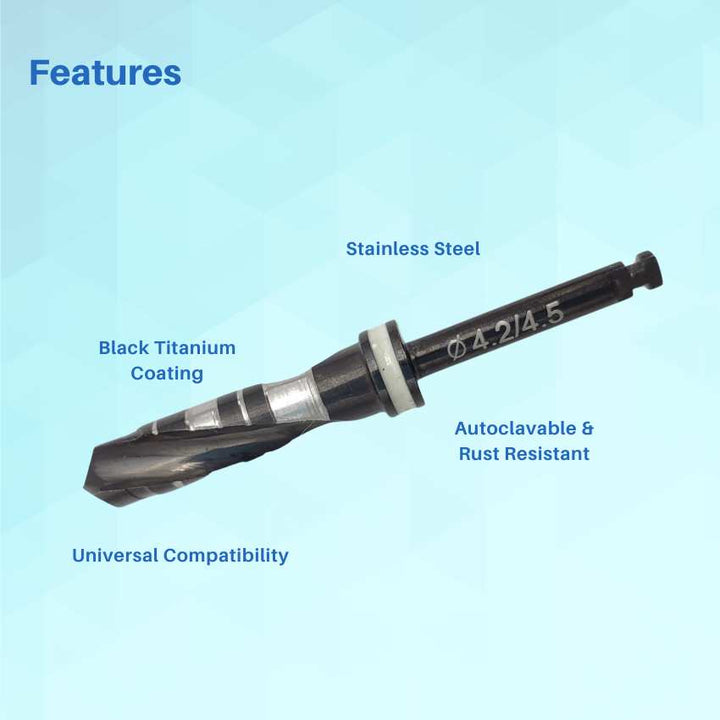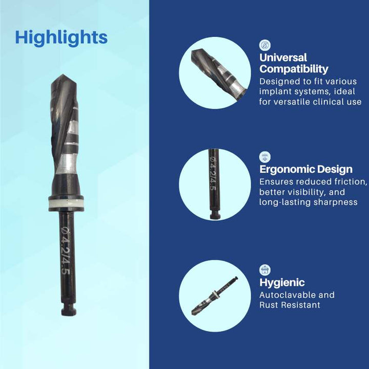 Artman Instruments 4.2/4.5 mm Titanium-Coated Stainless Steel Dental Implant Drill Precision Osteotomy Drill for Implant Site Preparation