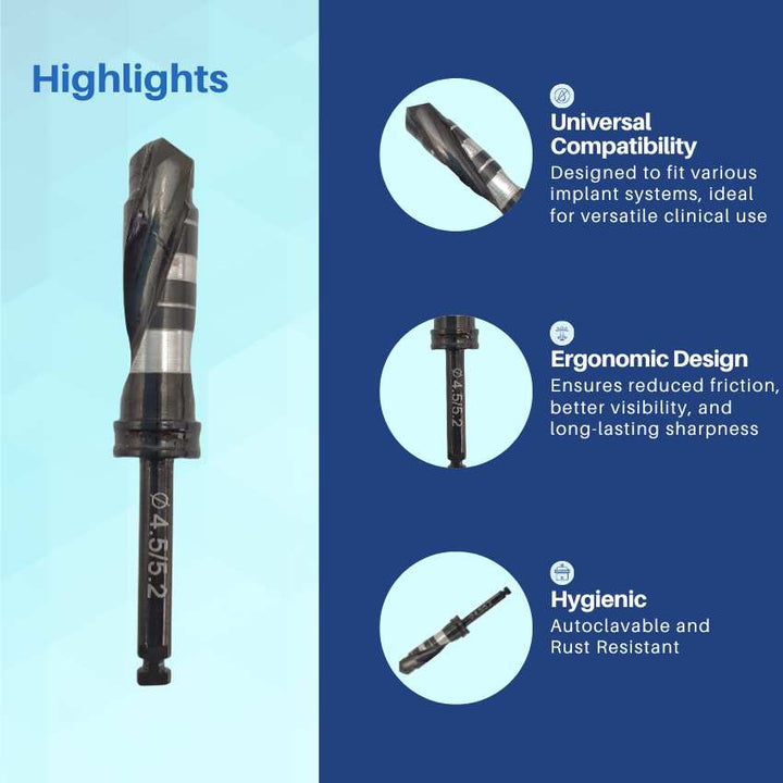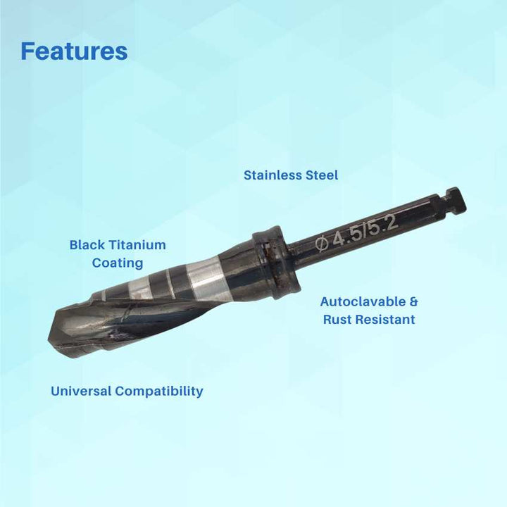 Artman Instruments 4.5/5.2 mm Titanium-Coated Stainless Steel Dental Implant Drill Precision Osteotomy Drill for Implant Site Preparation