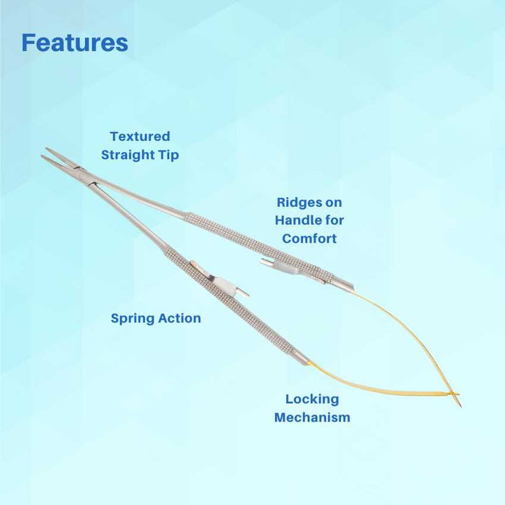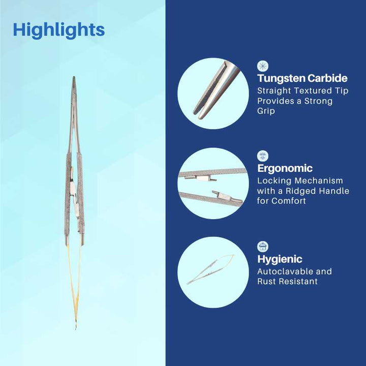 Tungsten Carbide Jaws: Engineered with high-precision tungsten carbide inserts that offer superior grip, long-lasting durability, and exceptional needle control.