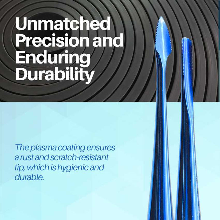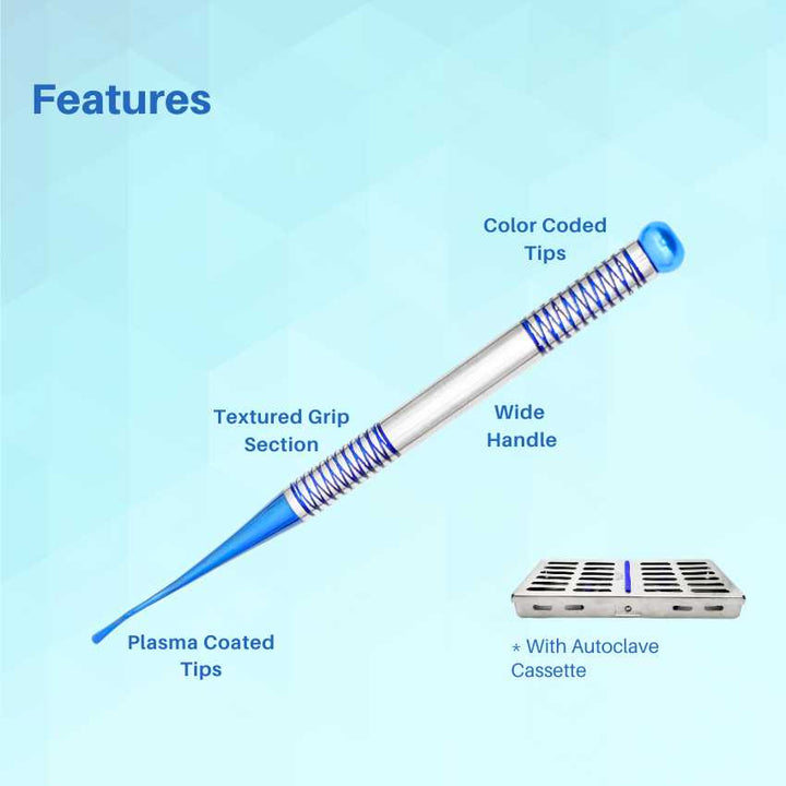 Each elevator is equipped with plasma-coated tips for enhanced strength and durability. The coating not only makes the tips scratch-resistant but also offers a smoother, controlled grip on roots, minimizing the risk of breakage during extractions. -