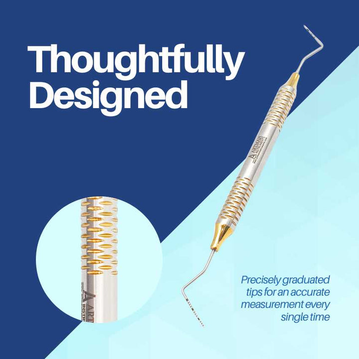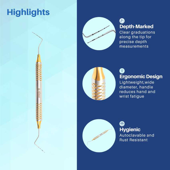 - Dual-Ended Design: Features UCNI 15 & CP12 markings for versatile periodontal depth measurements.